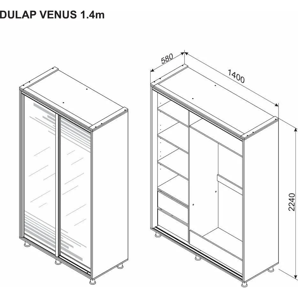 Шкаф-купе Ambianta Venus Mirror 1.4m Alb