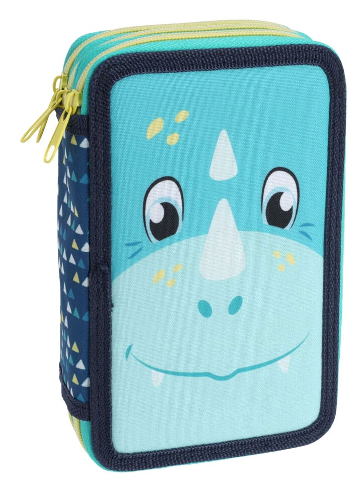Пенал "Дино" - это тройной пенал с динозаврической тематикой, разработанный для того, чтобы предоставить детям все необходимое для школы или для творческих занятий. Пенал имеет три отдельных отделения на молнии, каждое из которых наполнено разнообразными письменными и рисовальными принадлежностями.