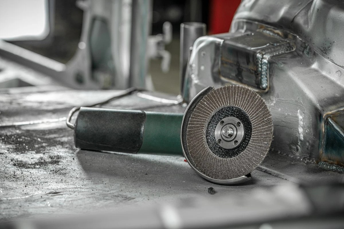 - Удобство в работе: Выпуклая форма диска и угловое расположение лепестков облегчают работу с угловой шлифовальной машиной, обеспечивая оптимальный контакт с поверхностью.