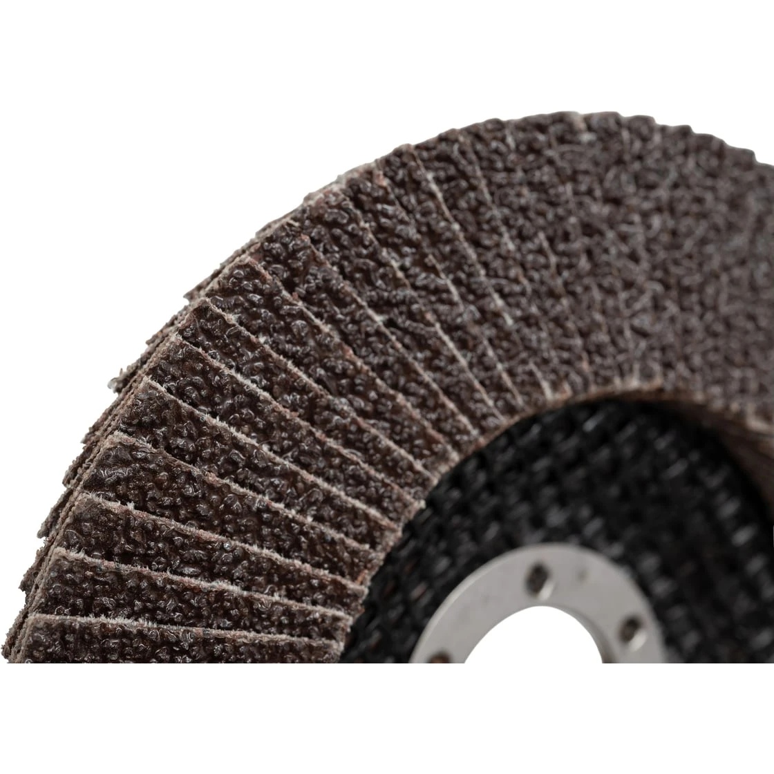 - Удобство в работе: Выпуклая форма диска и угловое расположение лепестков облегчают работу с угловой шлифовальной машиной, обеспечивая оптимальный контакт с поверхностью.