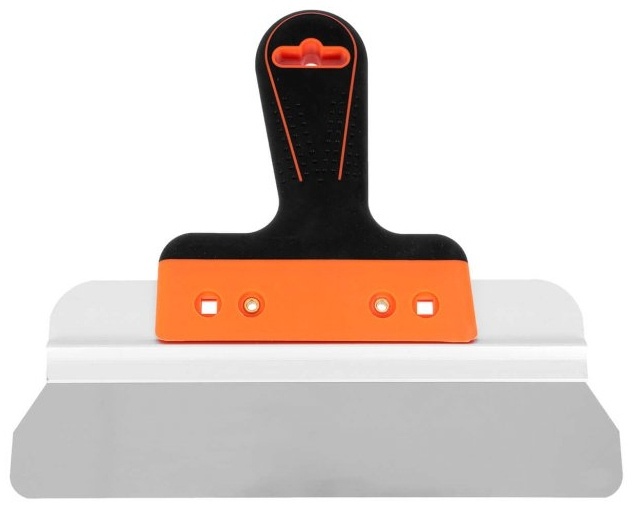 Прорезиненное покрытие ручки с надежным фактурным нанесением позволяет легко удерживать шпатель в процессе работы без риска выскальзывания. Усиленное крепление способствует лучшей фиксации лопатке к ручке.
