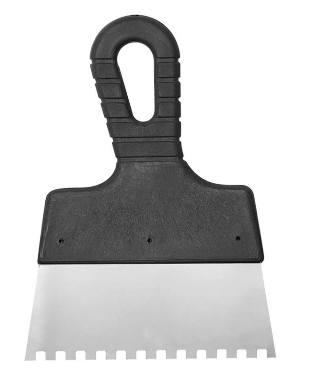 Шпатель шириной 250 мм выполнен из нержавеющей стали . Он используется для нанесения строительных материалов на стены. Эргономичная и прочная пластиковая ручка.