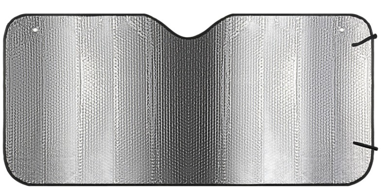 Двусторонняя солнцезащитная шторка размером необходима для блокировки попадания солнечных лучей со стороны лобового стекла в салон машины. Серебристая поверхность шторки отражает солнечные лучи, защищая салон и торпеду автомобиля от нагрева. Крепится к лобовому стеклу с помощью двух присосок. Высота шторки 70 см - идеальна для средне размерных автомобилей.