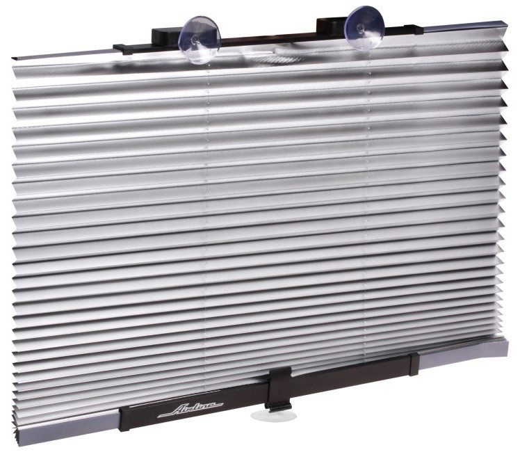 Представляют собой полотно из фольгированного материала с механизмом автоматического складывания по принципу веера, с помощью пружины и лески. Серебристая поверхность шторок отражает солнечные лучи, защищая салон и торпеду автомобиля от сильного нагрева. Шторки имеют универсальный размер и крепление, за счет этого могут быть установлены в автомобиле любой модели и марки. Устанавливаются, как правило, на лобовое стекло со стороны пассажира и при вытягивании надежно фиксируются на различную длину. Шторки AIRLINE помогут увеличить степень удобства водителя и пассажиров в использовании автомобиля. Кроме того, постоянная защита салона от солнца позволит сохранить первоначальный вид автомобильных сидений и защитит их от выцветания.