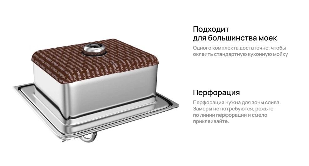 Одного комплекта достаточно, чтобы оклеить стандартную кухонную мойку
