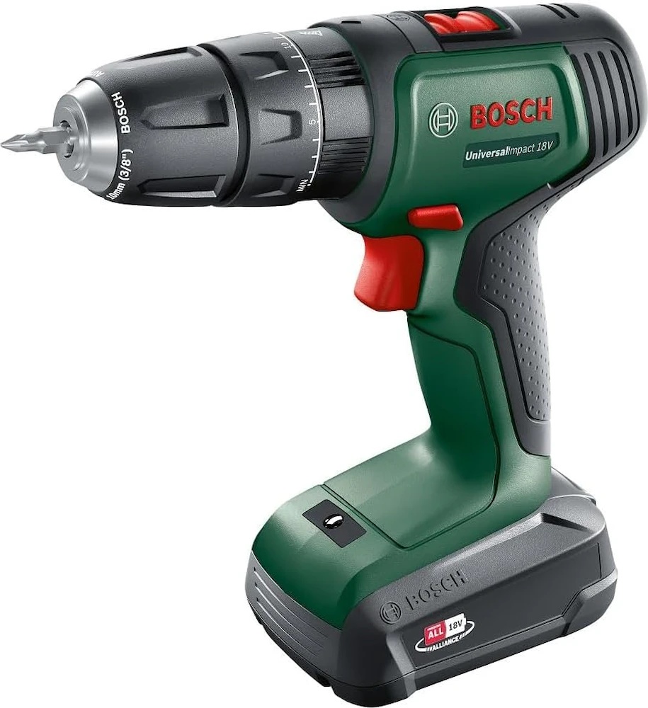 Этот мощный, легкий и компактный комбинированный дрель-шуруповерт представляет собой идеальное сочетание мощности и универсальности. Эргономичный дизайн обеспечивает удобство в обращении. Благодаря 20 различным настройкам крутящего момента и режимам сверления и ударного сверления всегда легко подобрать нужную мощность для любой задачи. Высокопроизводительная 2-скоростная планетарная коробка передач отвечает требованиям любого применения. UniversalImpact 18V предназначен для сверления и закручивания шурупов в дереве и металле, а также для ударного сверления в кирпичной кладке. Он имеет 10-миллиметровый хвостовик и одногильзовый патрон для легкой смены шуруповертных и сверлильных насадок. Инструмент принадлежит к POWER FOR ALL ALLIANCE. Один аккумулятор может питать большое количество инструментов разных марок.