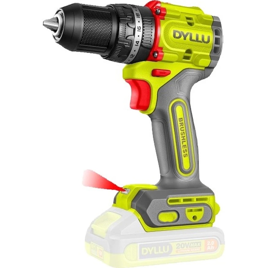 DYLLU DTCDP8285 — это аккумуляторная ударная дрель-шуруповерт с бесщеточным двигателем, предназначенная для сверления и работы с крепежом в бытовых и полупрофессиональных условиях. Модель работает на платформе 20В и выделяется высоким крутящим моментом в 82 Нм, что позволяет справляться с плотными материалами.