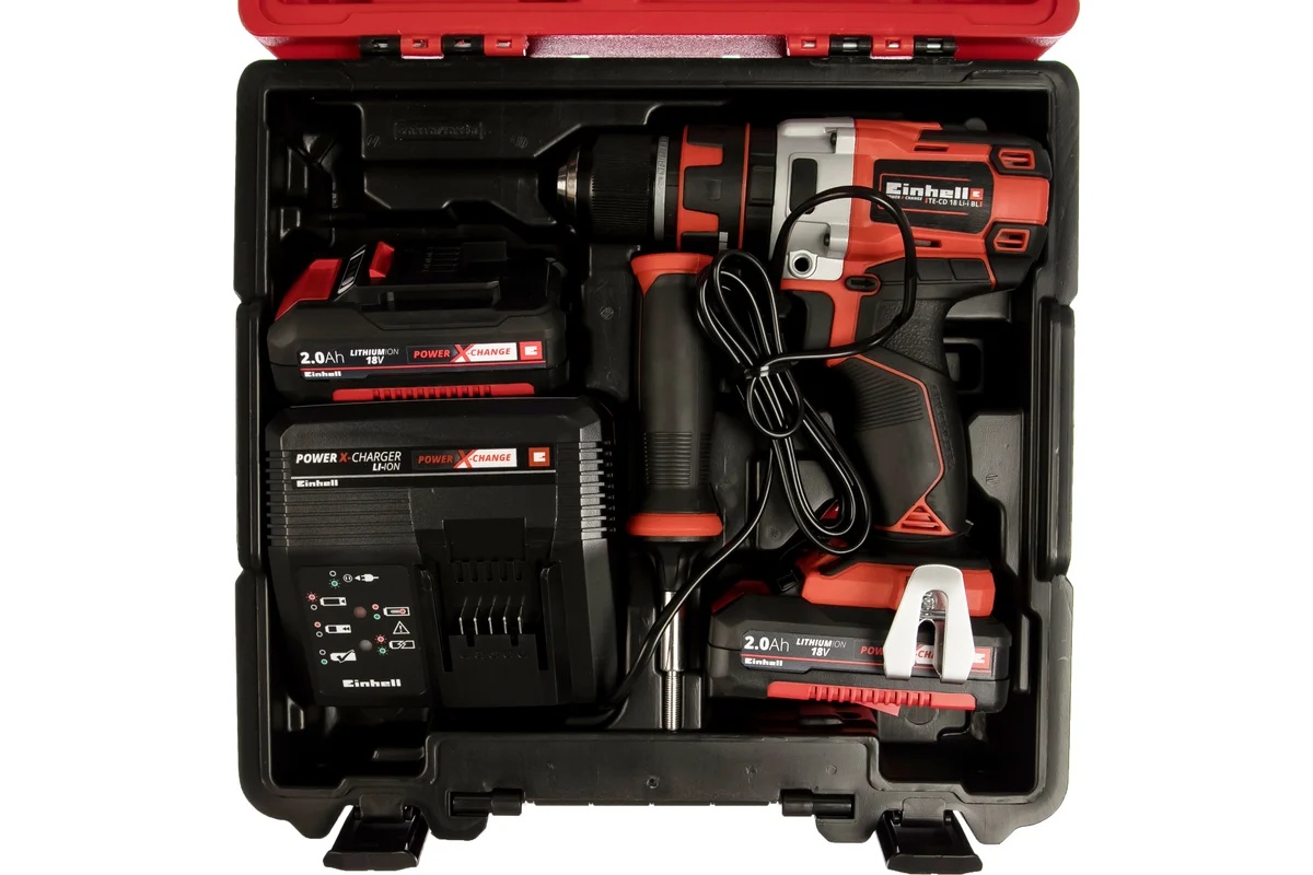 Аккумуляторная дрель-шуруповерт Einhell TE-CD 18 Li-i BL 4513861 оснащена бесщеточным двигателем, что гарантирует долгий срок службы. Быстрозажимной патрон позволяет экономить время на смене оснастки. Функция реверса упрощает выведение застрявшего в материале сверла. Для простоты транспортировки и хранения инструмента в комплект поставки входит кейс.