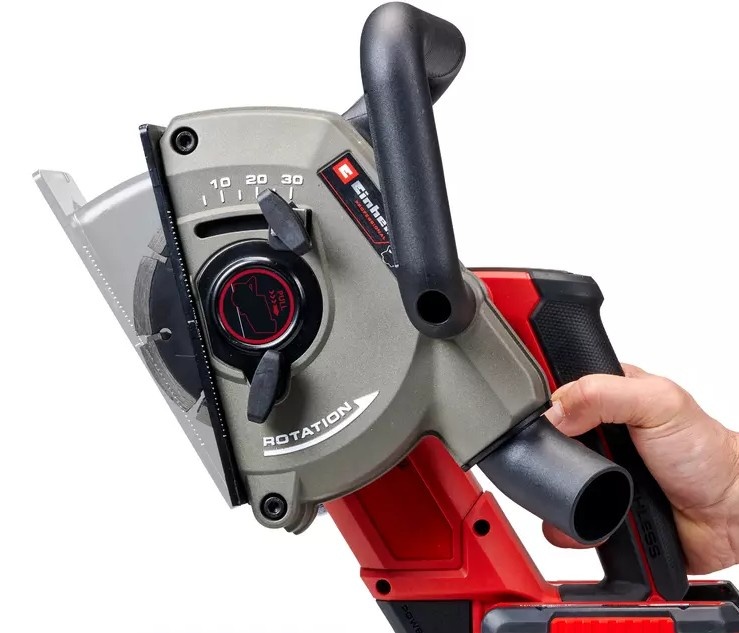 Беспроводной аккумуляторный бесщеточный штроборез Einhell Professional TP-MA 36/30 Li BL - Solo линейки Power X-Change system серии Professional вырезают горизонтальные и вертикальные пазы и каналы для труб, коробов и т.п. в каменной кладке без забот с кабелями. Этот штроборез является частью мощной и гибкой семьи Power X-Change и для работы требуется две батареи 18 В. Инструмент питается от бесщеточного двигателя Einhell PurePOWER – этот бесщеточный двигатель обеспечивает большую мощность и более длительное время работы, чем обычные двигатели с угольными щетками. Используя два параллельных режущих диска Ø 125 мм, он производит точные разрезы или пазы в каменной кладке. Плавная регулировка глубины паза и индивидуально регулируемая ширина реза до 30 мм обеспечивают поразительную гибкость для создания узких или широких пазов. Плавный пуск и резка с натяжением обеспечивают безопасную работу. Защита от перегрузки обеспечивает долговечность инструмента, а защитный кожух режущего диска защищает пользователя. Направляющий ролик и вспомогательная рукоятка повышают удобство использования, обеспечивая надежный и прочный захват. Метка, показывающая положение режущих дисков, позволяет позиционировать инструмент для точных по размеру разрезов. Штроборез оснащен фиксатором шпинделя, позволяющим легко изменять диск с помощью шестигранного ключа торца. Адаптер для извлечения пыли позволяет подключить штроборез к пылесосам Einhell. Он поставляется с сумкой для хранения для чистой и безопасной транспортировки, а также с двумя алмазными режущими дисками, чтобы вы могли сразу же начать работу. Инструмент поставляется без аккумулятора и зарядного устройства, но может быть приведен в действие с помощью Power X-Change аккумулятора.