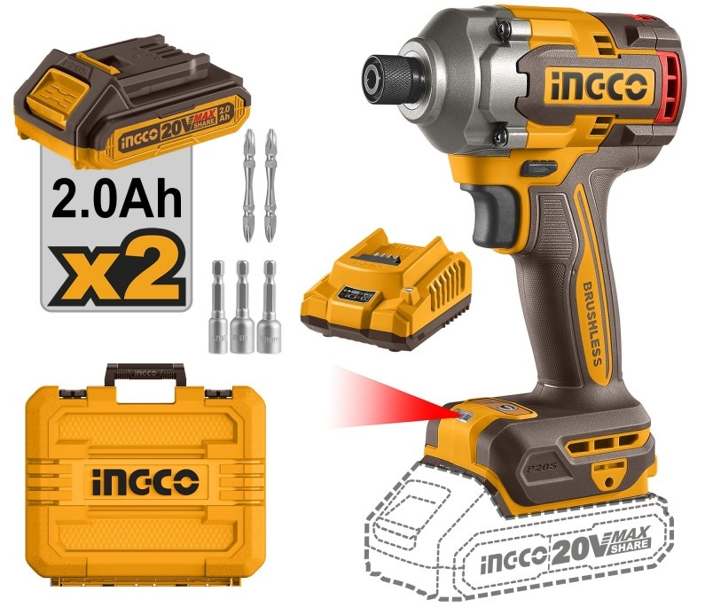 Винтовёрт аккумуляторный ударный Li-Ion 20V/2*2A 285Nm INGCO – это высокопроизводительный инструмент, предназначенный для выполнения самых сложных задач. Оснащённый мощным бесщеточным мотором, он обеспечивает стабильную и надёжную работу при любых условиях.