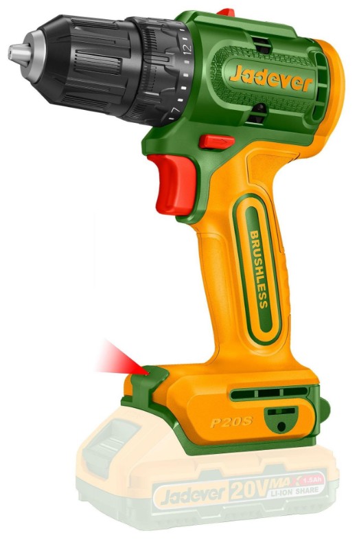 Шуруповёрт Jadever JDCDP5521 — аккумуляторная дрель-шуруповёрт с бесщёточным двигателем, напряжение 20 В. Идеален для бытового и профессионального использования, включая ремонт и монтаж.