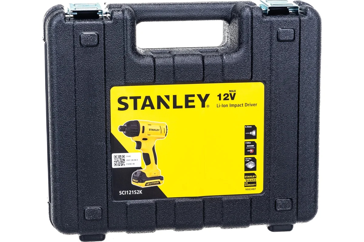 - Импульсный шуруповерт Stanley SCI121S2K предназначен для завинчивания крепежных элементов. Источником питания является литий-ионный аккумулятор, без эффекта памяти и саморазряда.