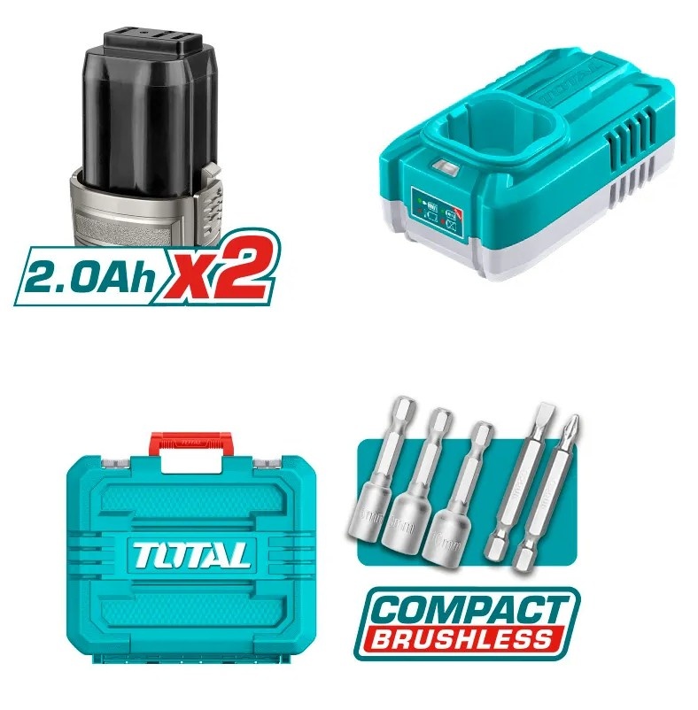 Компактный ударный винтоверт TOTAL TIRLI16178 — это мощный инструмент, предназначенный для выполнения различных задач, связанных с закручиванием и откручиванием винтов и болтов. Вот основные характеристики и особенности этого устройства: