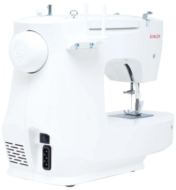 Благодаря размерам 30×36×18 см электромеханическая швейная машина Singer M1605 поместится даже в небольшом помещении. Она хорошо подходит для начинающих любителей шитья.