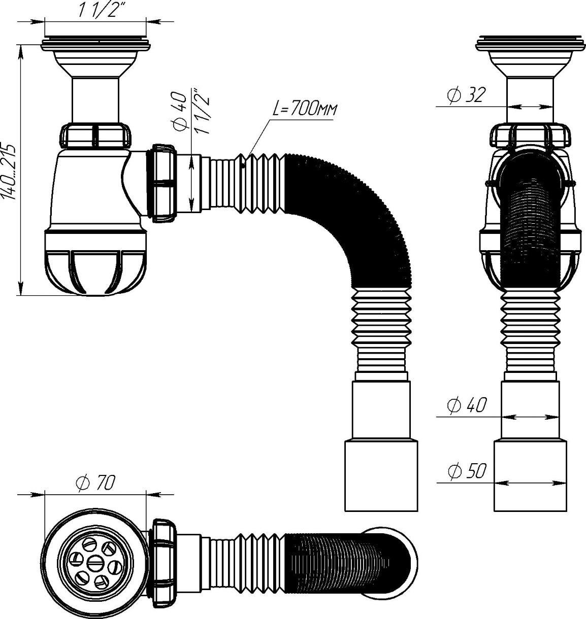 Сифон для раковины Aquant S0515-35-MR фото №2 — интернет-магазин Desire.md