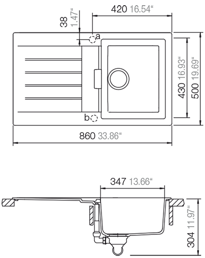Размер мойки860x500 мм