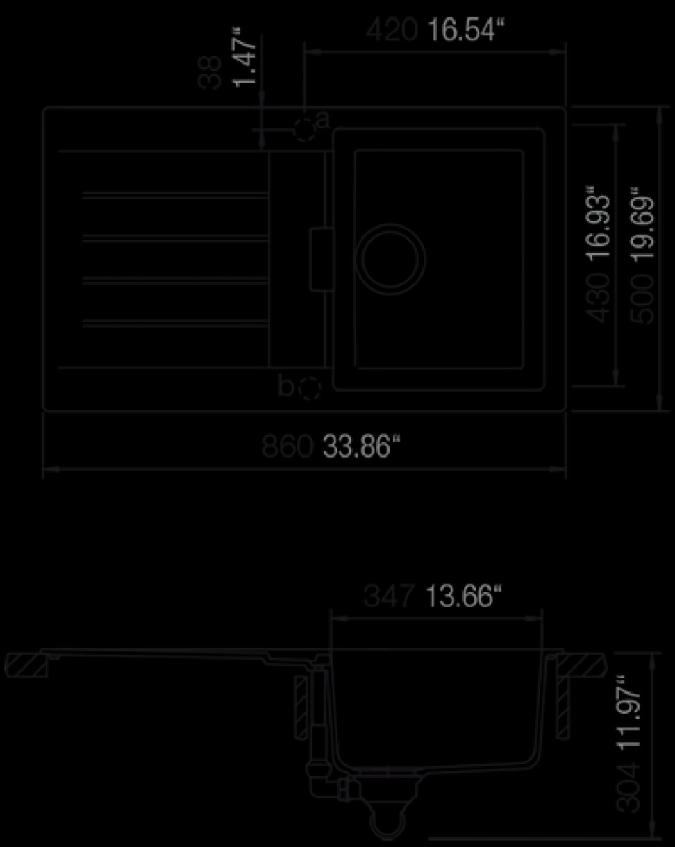 Размер мойки860х500 мм