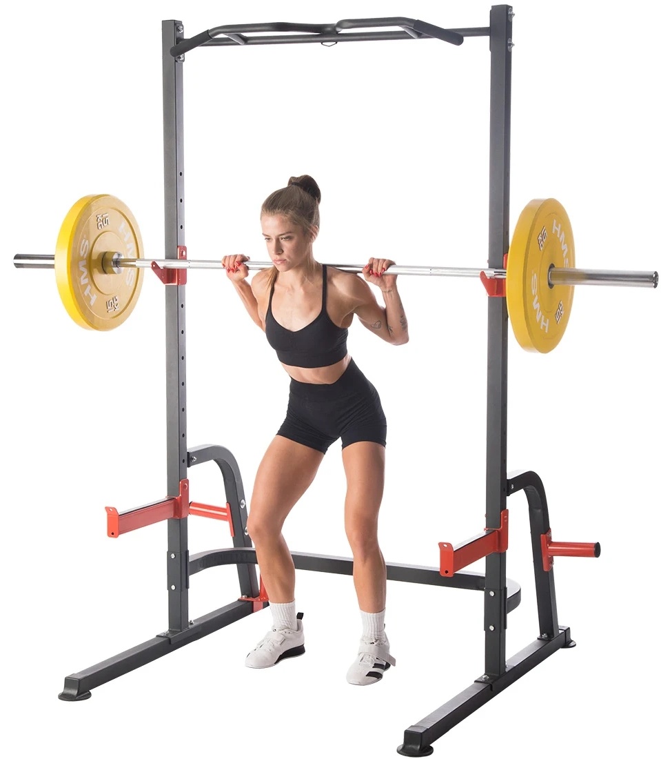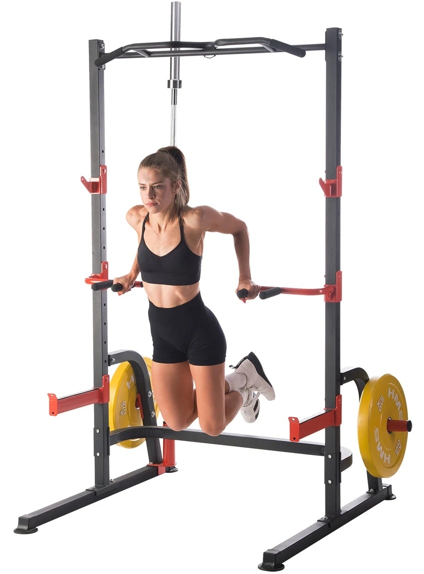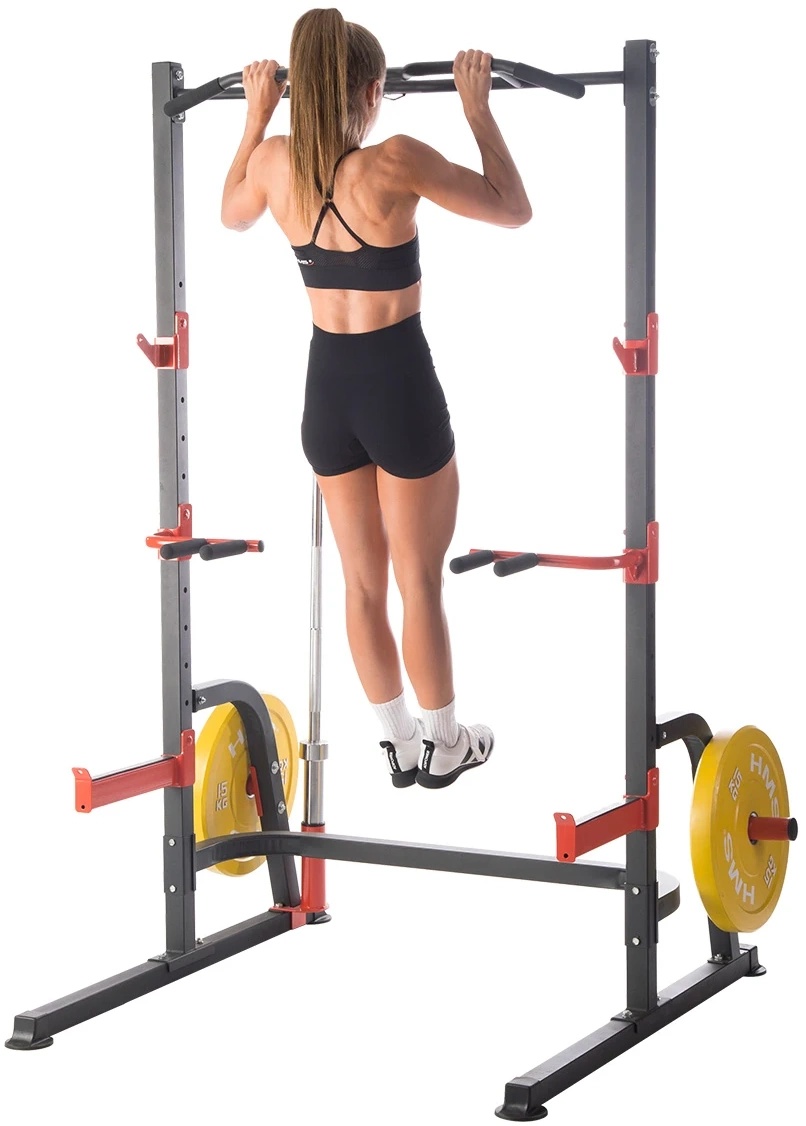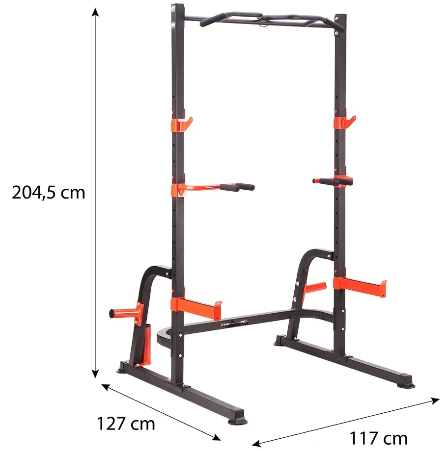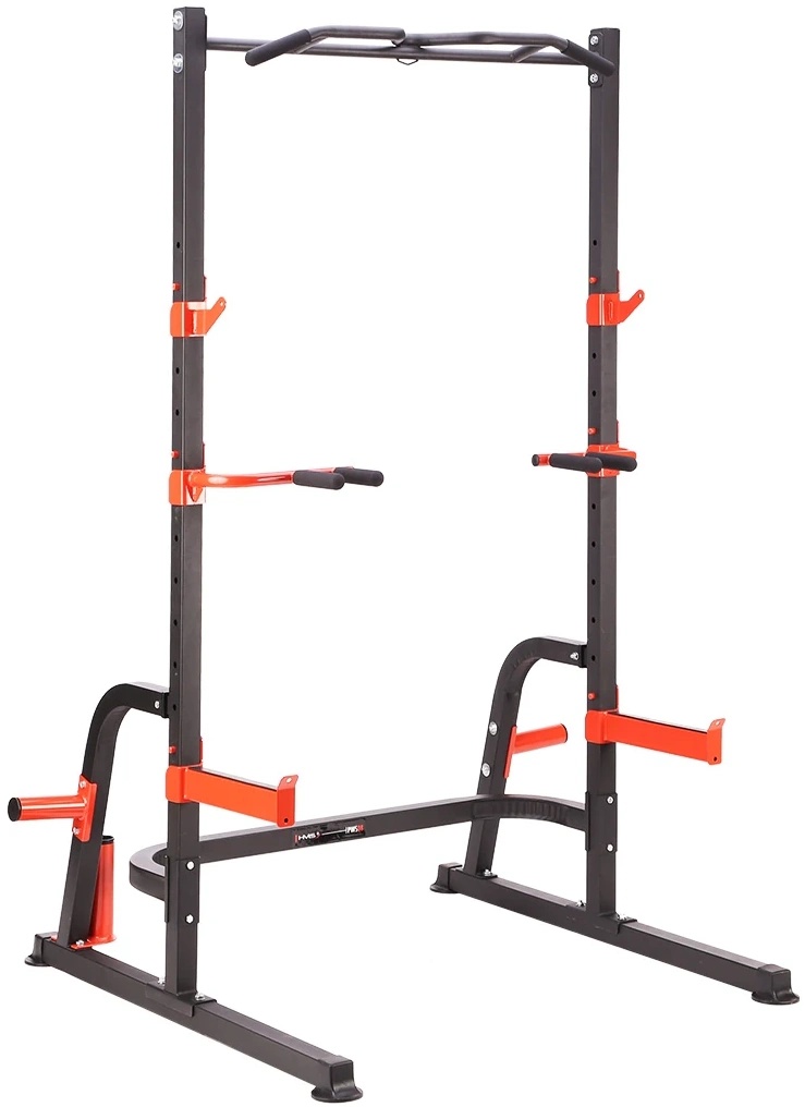 Многофункциональный стенд PWS08 — это многофункциональный тренировочный стенд производства HMS. Стойка оснащена держателем для штанги и страховочными крюками. Следовательно, можно безопасно и самостоятельно выполнять силовые упражнения с дополнительным весом , а штангу и поручни можно использовать для занятий художественной гимнастикой , то есть упражнениями с собственным весом тела. Поручни также можно использовать при занятиях на силовой скамье. Поручни, держатели для штанги и страховочные крюки регулируются по высоте.