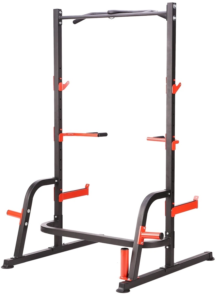 Стойка оснащена дополнительными крючками для хранения гирь и держателем для штанги. Они облегчают поддержание порядка в тренажерном зале, уменьшают пространство, занимаемое оборудованием, и облегчают изменение нагрузки на штангу.