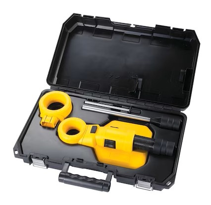 Система пылеудаления DEWALT Large Hammer идеально подходит при сверлении в кирпичной кладке. Основание имеет прочное резиновое уплотнение, обеспечивающее адгезию к большинству каменных поверхностей. Две сменные сверлильные головки обеспечивают оптимальное удаление пыли, одна для отверстий до 1-1/2 дюйма и одна для отверстий до 2 дюймов.