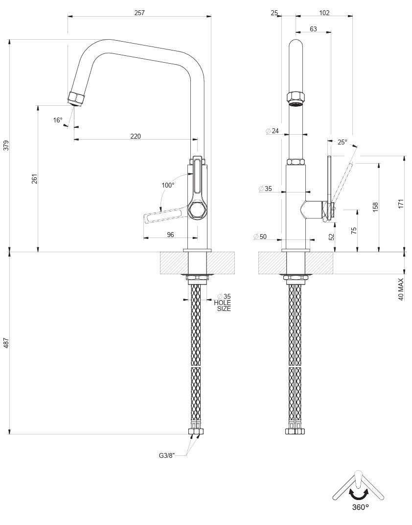 Угол поворота излива360 °