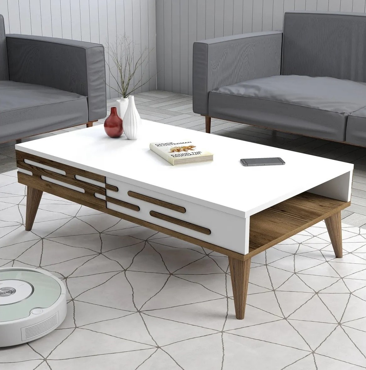 С элегантным и минималистичным дизайном столик легко вписывается в любой современный или современно-классический интерьер, добавляя нотку стиля и гармонии. Чистые линии и гладкие края создают ощущение баланса, делая его идеальным центром гостиной.