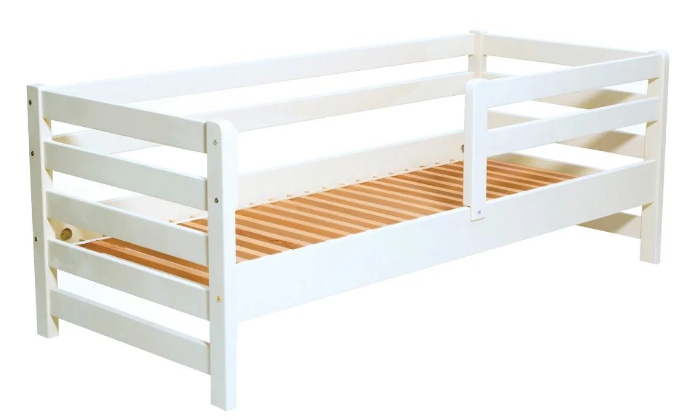 Модель изготовлена из массива дерева бук, тщательно отшлифованного и покрытого экологической краской на водяной основе. Также модель имеет защитный бортик для безопасности ребенка, который по желанию можно не прикреплять.