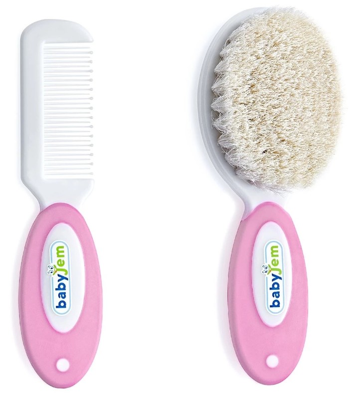 Набор для ухода за волосами малыша содержит расческу с закругленными зубьями и щетку из мягкого натурального ворса, благодаря мягкому ворсу, из которого она создана, щеткой можно пользоваться с первых дней жизни.