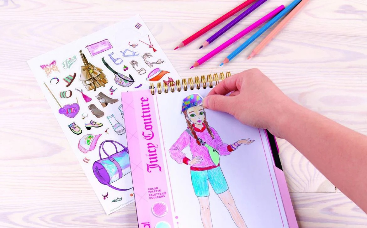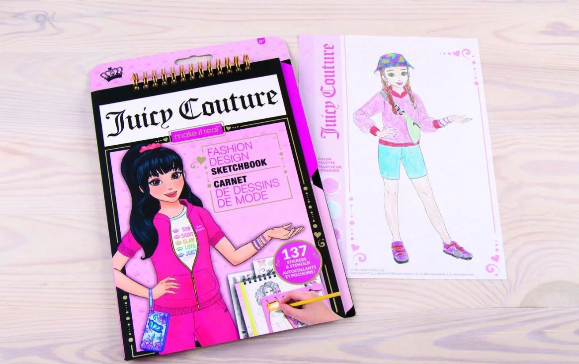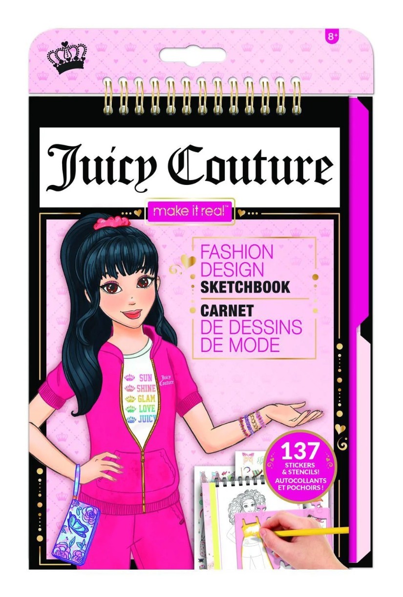 Блокнот “Make It Real Juicy Couture Fashion Sketchbook” предназначен для юных модных дизайнеров. В комплект входят страницы для набросков, трафареты и наклейки, вдохновленные брендом Juicy Couture, которые позволяют пользователям создавать собственные модные коллекции.