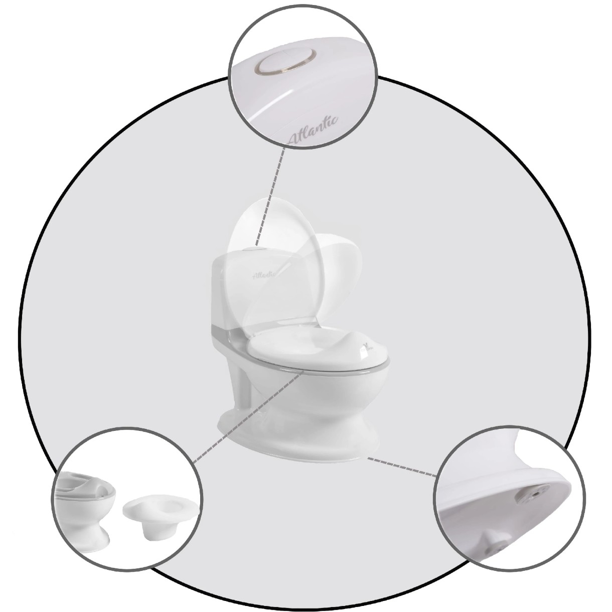 Горшок Atlantic подходит для детей от 1 года и с максимальным весом до 30 кг.