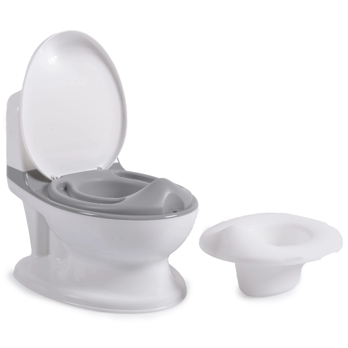 Дизайн, напоминающий унитаз для взрослых, помогает ребенку привыкнуть к переходу от горшка к туалету. Горшок оснащен звуковым эффектом «смыв воды». Наслаждайтесь первыми бесценными уроками вашего малыша.