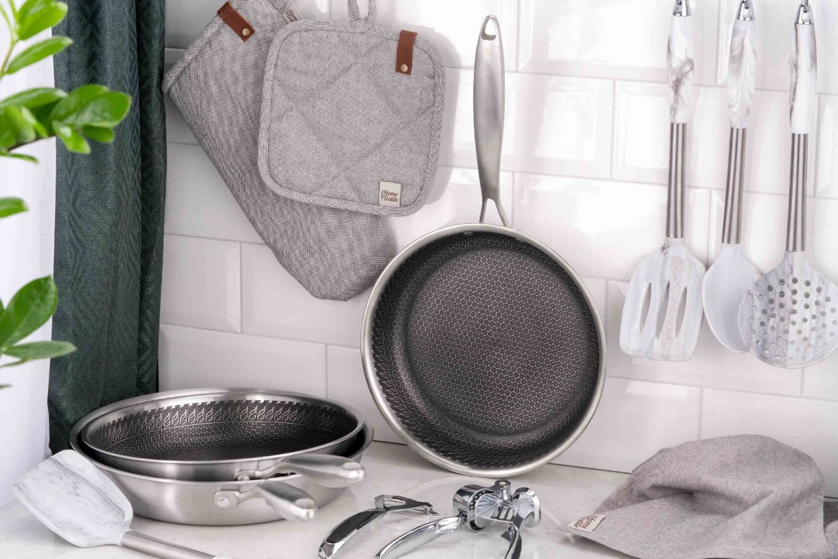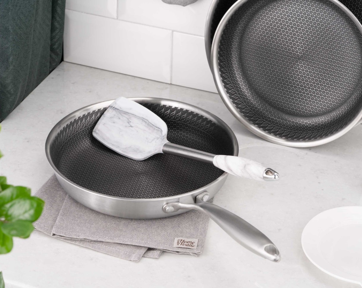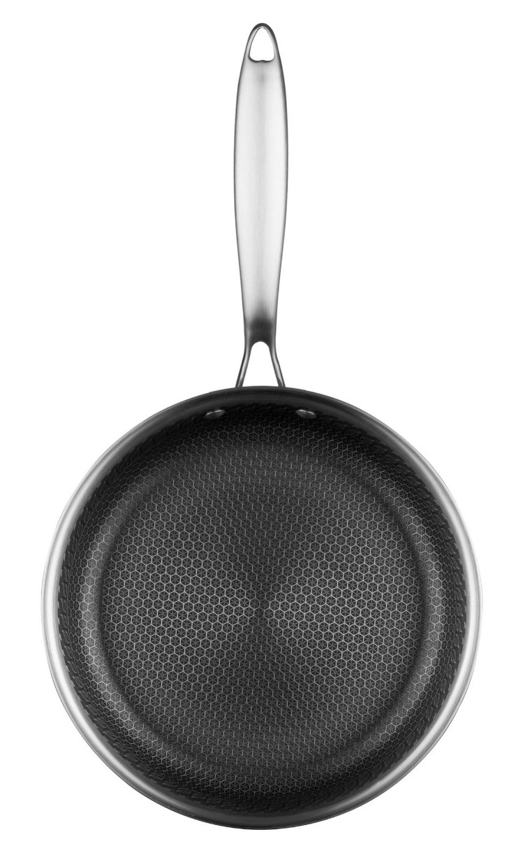 Изготовлена из нержавеющей стали по технологии Triply, сковорода имеет противопригарное покрытие, устойчивое к царапинам. Можно использовать металлические аксессуары. Изделие можно мыть в посудомоечной машине. Диаметр модели составляет 24 см. По высоте 4,8 см сковорода имеет одинаковую толщину стенок и дна – 2,5 мм. Отличается широкой совместимостью: сковорода пригодна для использования на газовых, галогенных, стеклокерамических, индукционных и электрических плитах.