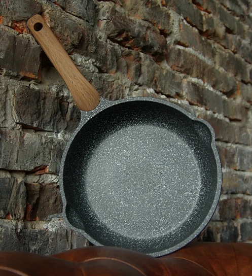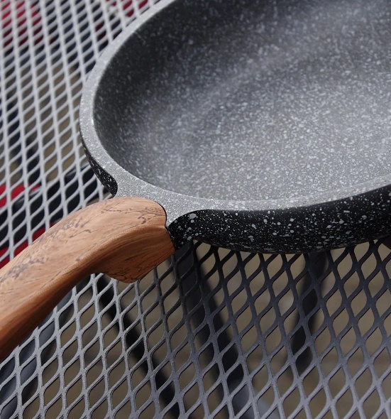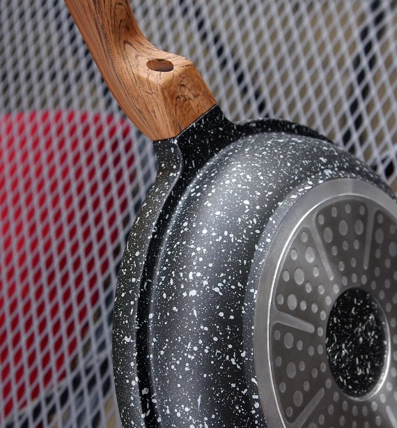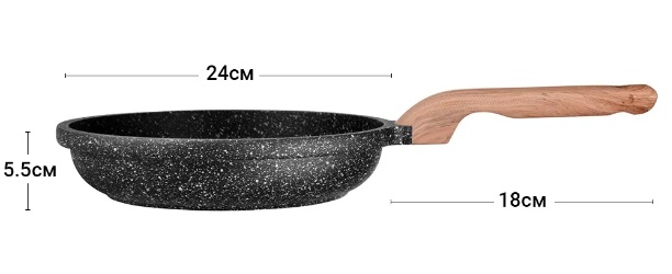 • Бакелитовые ручки с эффектом soft-touch, выполненные в благородном коричневом оттенке ‘под дерево’, приятны на ощупь, не скользят в руках, не нагреваются во время готовки.