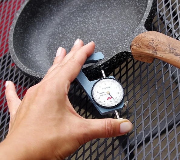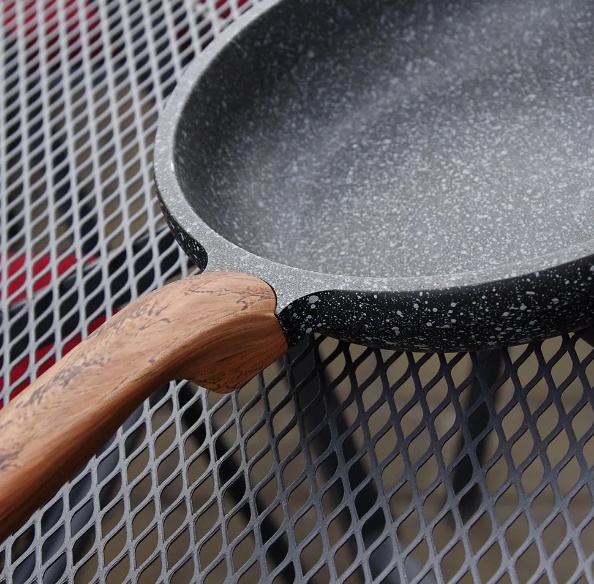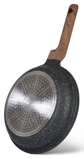 • Бакелитовые ручки с эффектом soft-touch, выполненные в благородном коричневом оттенке ‘под дерево’, приятны на ощупь, не скользят в руках, не нагреваются во время готовки.