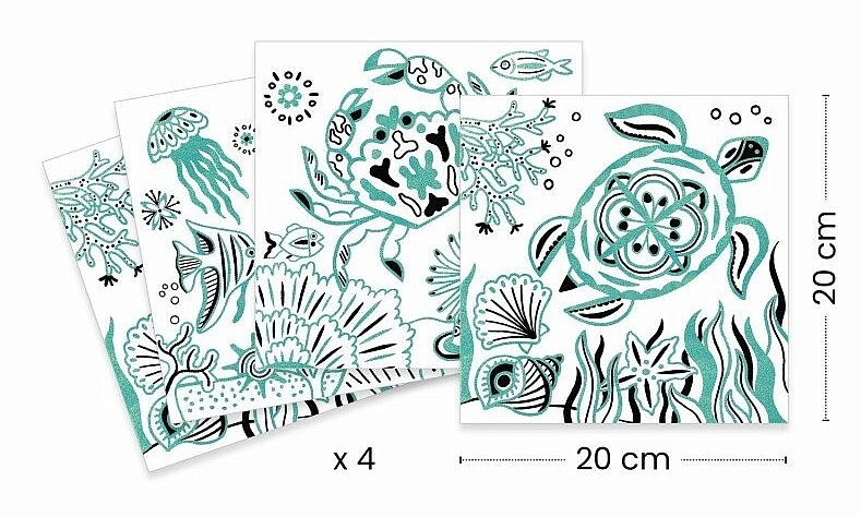 В упаковке вы найдете четыре изображения с предварительно напечатанным дизайном, вдохновленным морским дном.