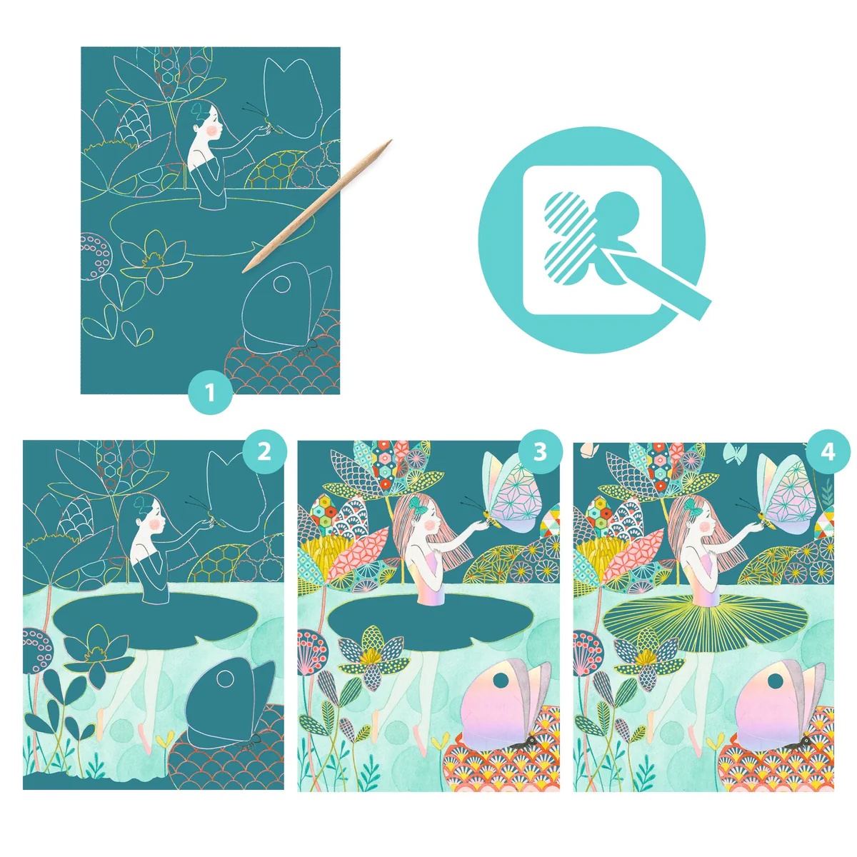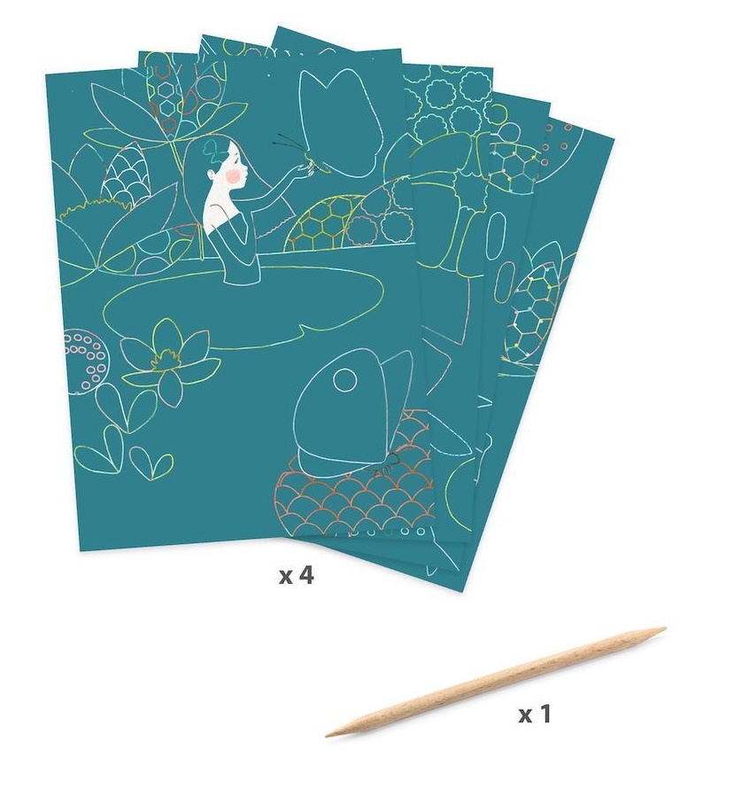 Комплектация4 скретч-карты (15 х 20 см), 1 двусторонний деревянный стилус, 1 цветная буклет с пошаговыми инструкциями