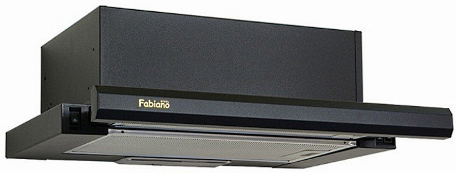Вытяжка Fabiano Slim имеет кнопочное управление, с помощью которого можно выбрать необходимую скорость работы (всего три). Модель оснащена мощным электромотором. Работает вытягивающее устройство в режимах отвода воздуха, а также рециркуляции.