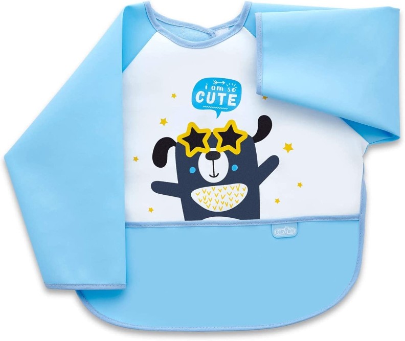 Еда, как правило, является причиной генерализованного загрязнения малыша, поэтому нагрудник является незаменимым аксессуаром детского стола. Рукава дают малышу свободу экспериментировать и учиться есть самостоятельно, не пачкая одежду.