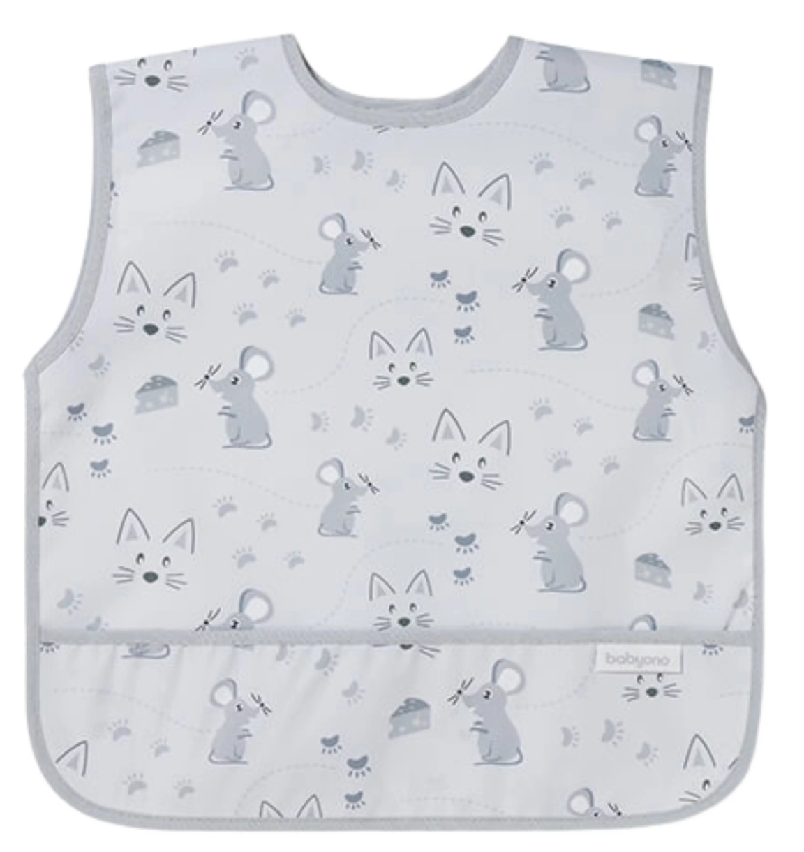 Фартук водостойкий, его легко поддерживать в чистоте, поэтому он пригодится во время обучения самостоятельному приему пищи.