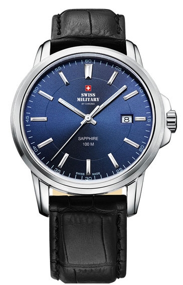 Кварцевые часы. Водостойкость WR 100. Часы, минуты, секунды, дата. Люминесцентные стрелки и метки. Корпус выполнен из нержавеющей стали. Диаметр корпуса 40 мм. Сапфировое стекло. Заводная головка с защитой. Кожаный ремешок.