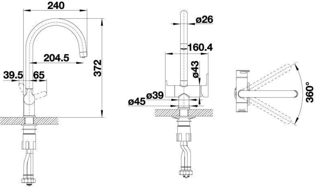 Угол поворота излива360 °