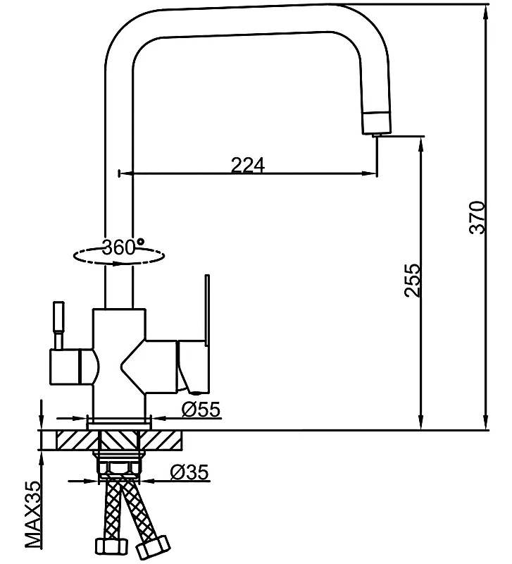 Угол поворота излива360 °