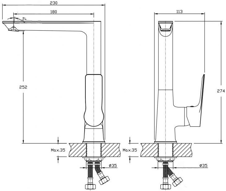 Высота излива274 мм