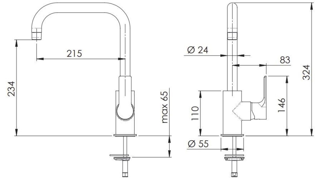 Высота излива234 мм