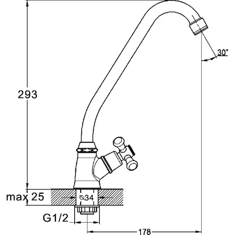 Высота излива293 мм