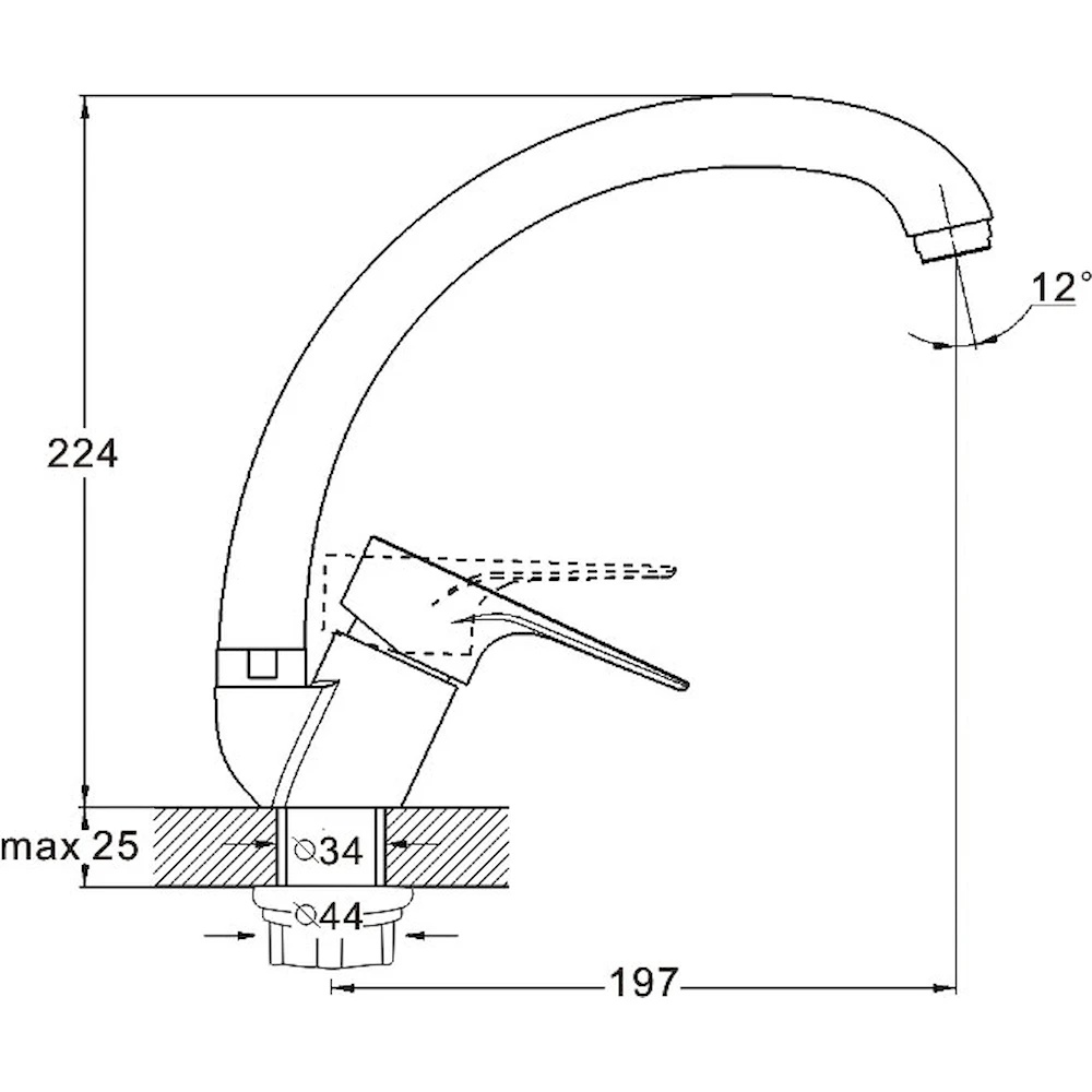 Высота излива224 мм