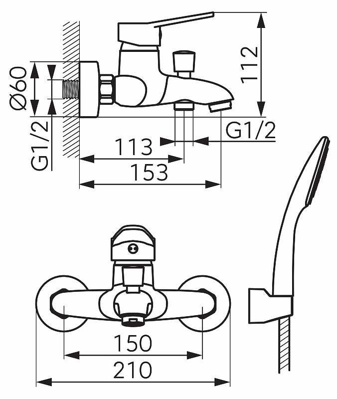Длина излива153 мм