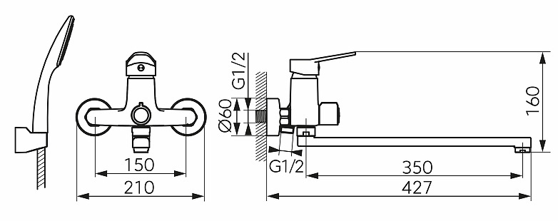 Длина излива350 мм