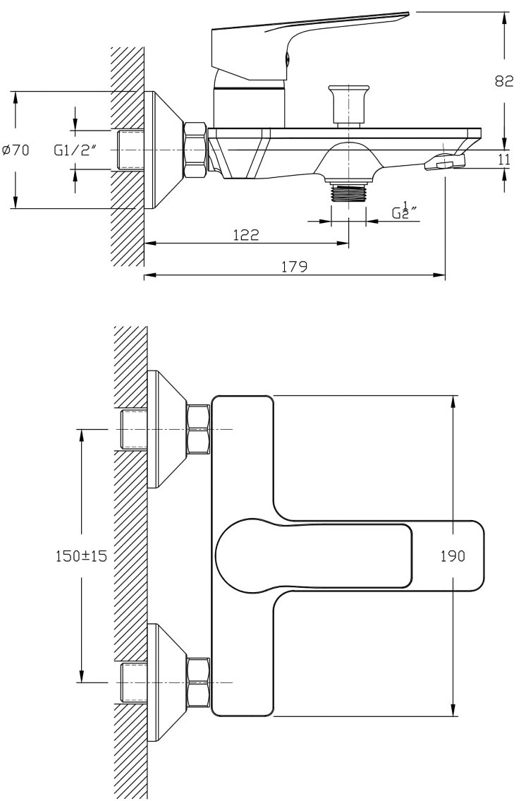 Длина излива179 мм