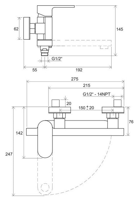 Длина излива192 мм